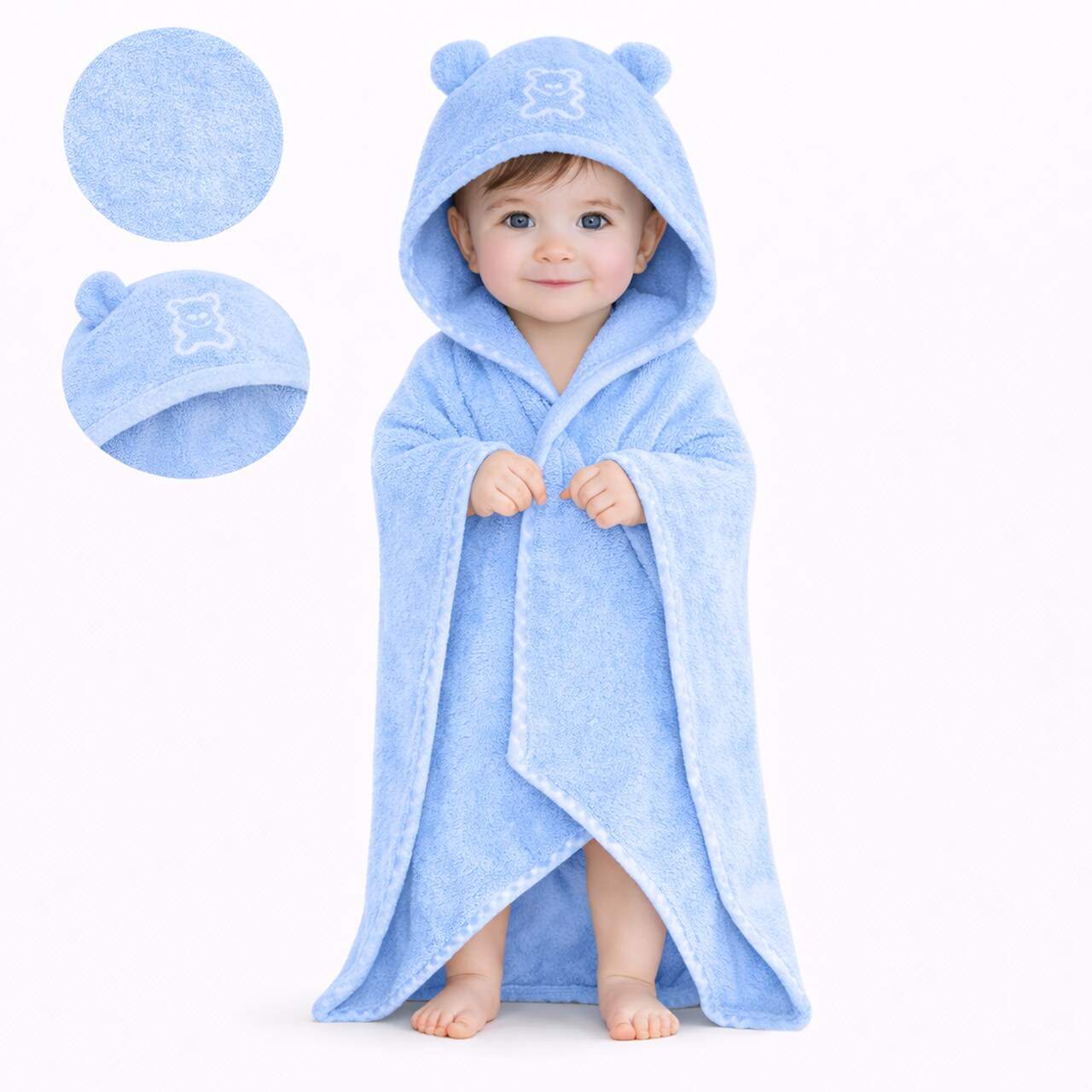 The TEDDY collection of hooded towels is a PREMIUM series that will win your hearts. This wonderful hooded towel is adorned with cute teddy bear ears, and the charming TEDDY embroidery will turn your baby's bath time into a fun experience. The hood in the towel provides comfortable drying of your baby's head while also protecting against the cold after the bath. The towel is made of high-quality 100% Egyptian cotton terry fabric. The fabric is highly absorbent, which means it quickly absorbs moisture from your baby's body, leaving it dry and warm. The bath towel is soft, antibacterial, and very pleasant to the touch.