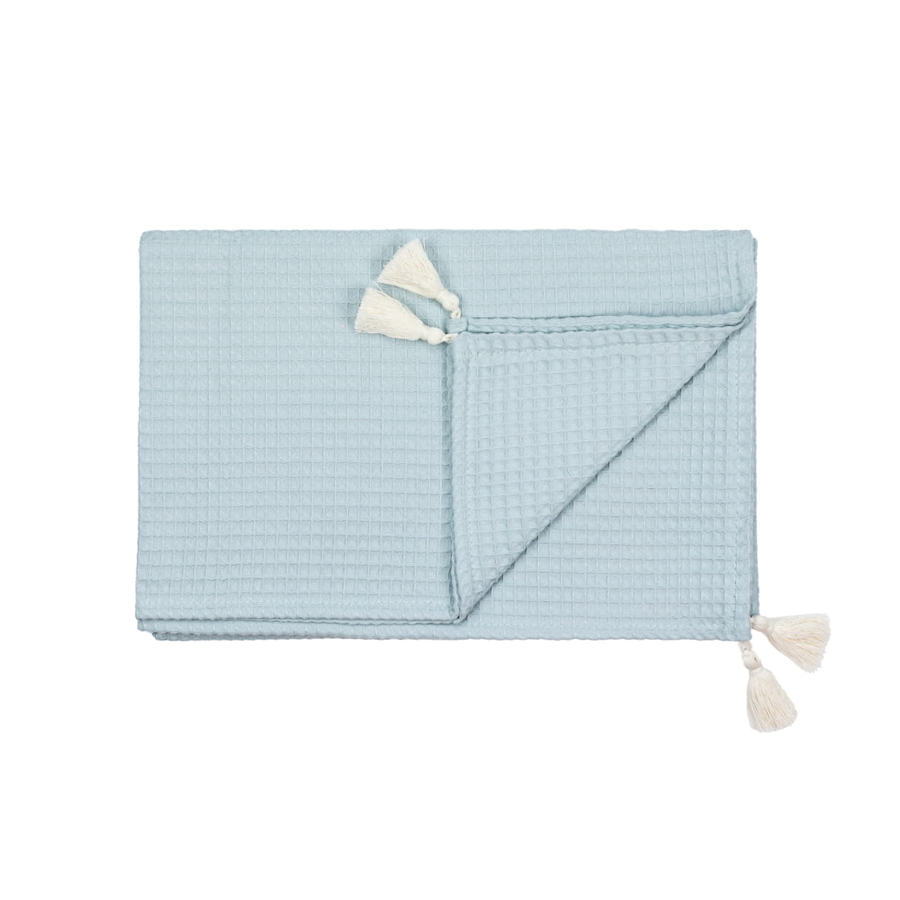 COTTON WAFFLE BLANKET ADORNED WITH HANDMADE TASSELS