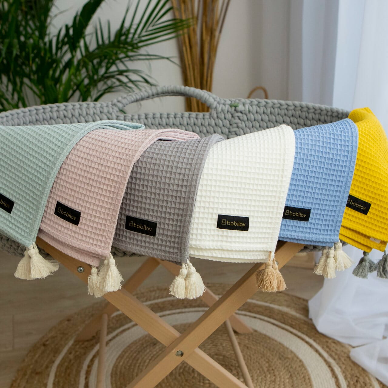 The cotton waffle blanket is an ideal cover for your little one. It is suitable for newborns as well as preschoolers. Made of soft 100% cotton with a waffle weave, it provides comfort and delicacy in contact with the baby's delicate skin. The blanket is lightweight, absorbent and very pleasant to the touch - perfect for any season. It can be used not only in a crib, but also during walks or as a play mat. Additionally, the blanket is finished with decorative cotton tassels - handmade, which gives it charm and a stylish look.