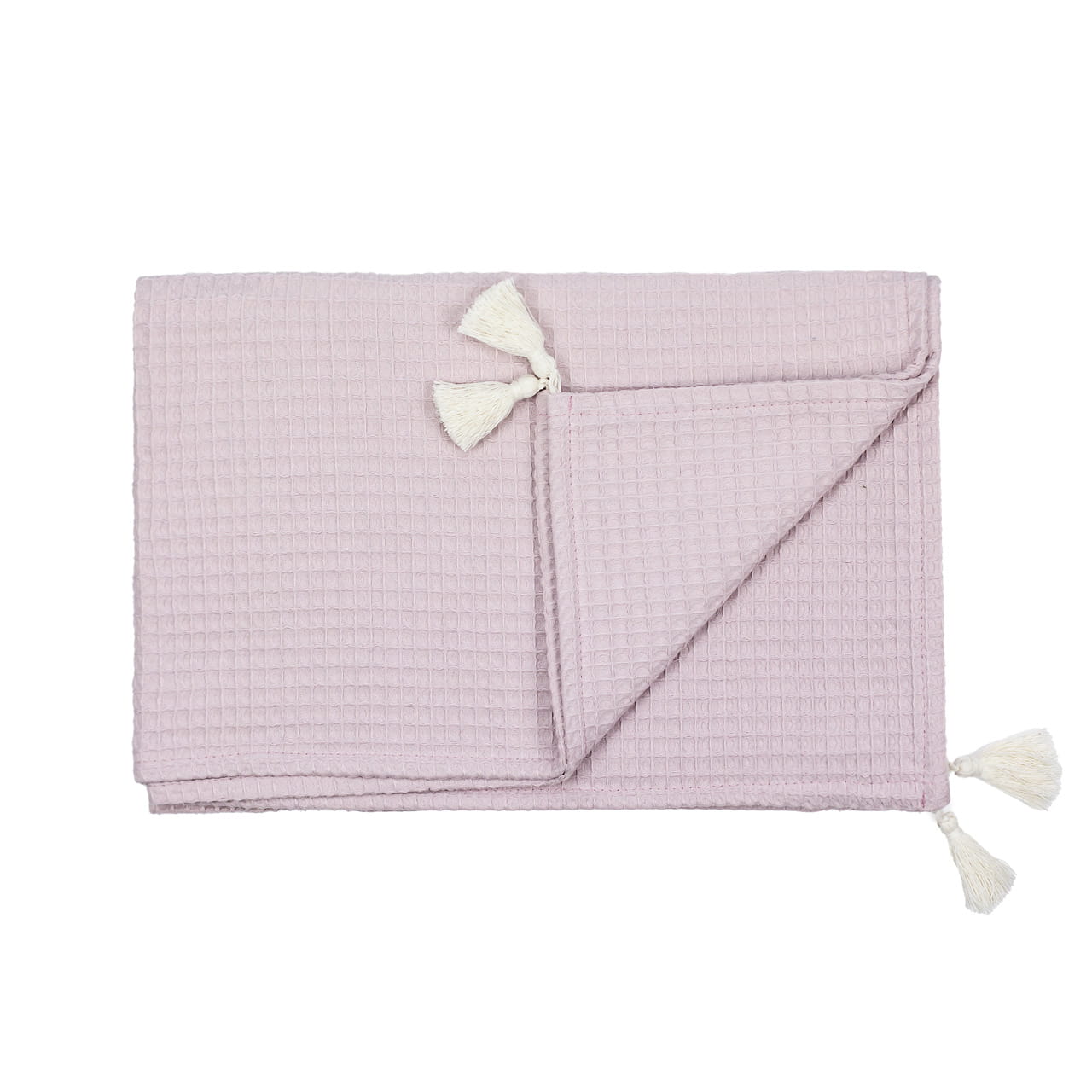 COTTON WAFFLE BLANKET ADORNED WITH HANDMADE TASSELS