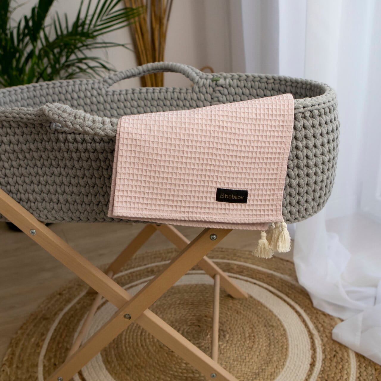 The cotton waffle blanket is an ideal cover for your little one. It is suitable for newborns as well as preschoolers. Made of soft 100% cotton with a waffle weave, it provides comfort and delicacy in contact with the baby's delicate skin. The blanket is lightweight, absorbent and very pleasant to the touch - perfect for any season. It can be used not only in a crib, but also during walks or as a play mat. Additionally, the blanket is finished with decorative cotton tassels - handmade, which gives it charm and a stylish look.