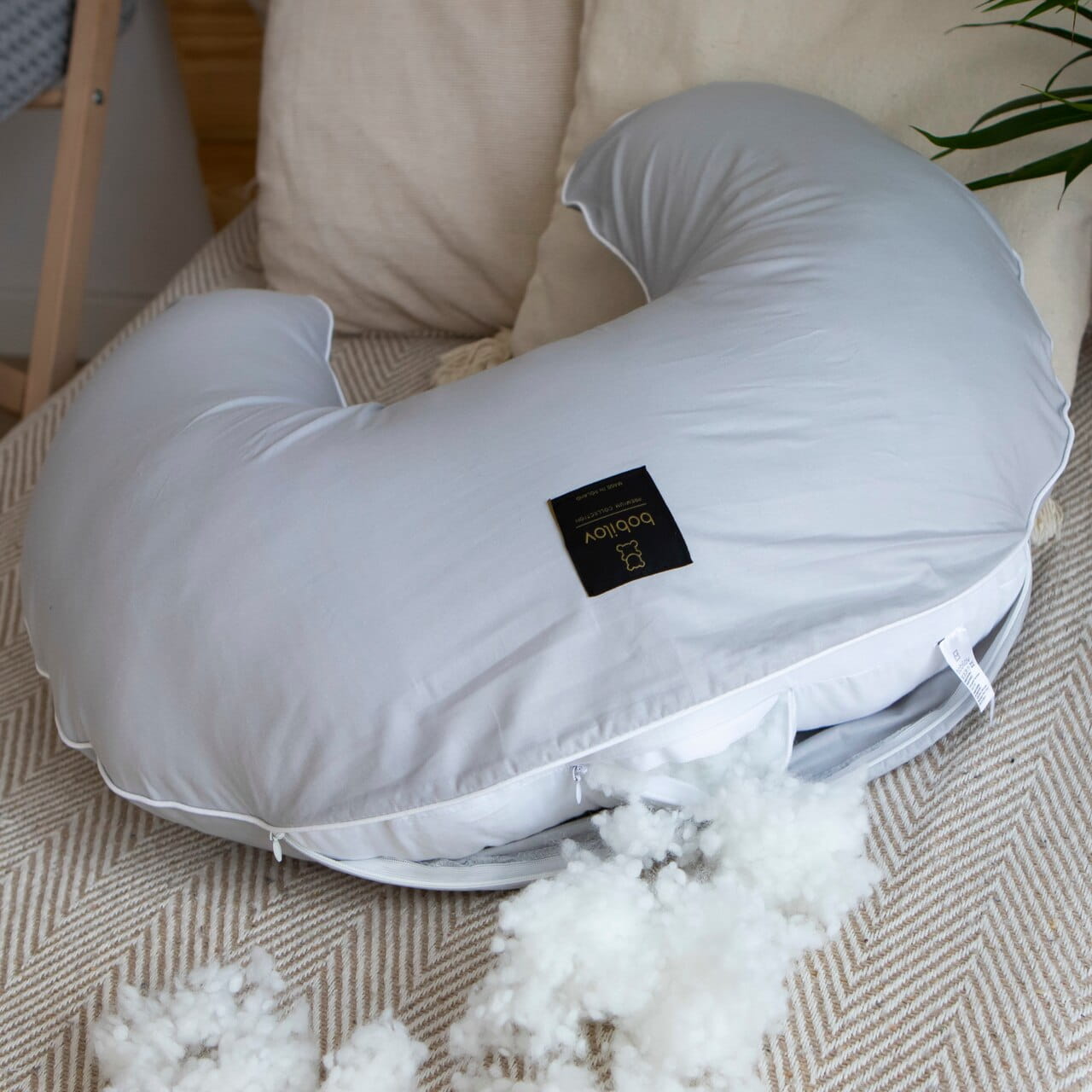 - Adjustable filling amount: The pillow has been designed with various preferences and needs of mothers in mind. Thanks to an innovative filling adjustment system, the pillow can be tailored to individual preferences, providing ideal support for both the breastfeeding mother and the baby.